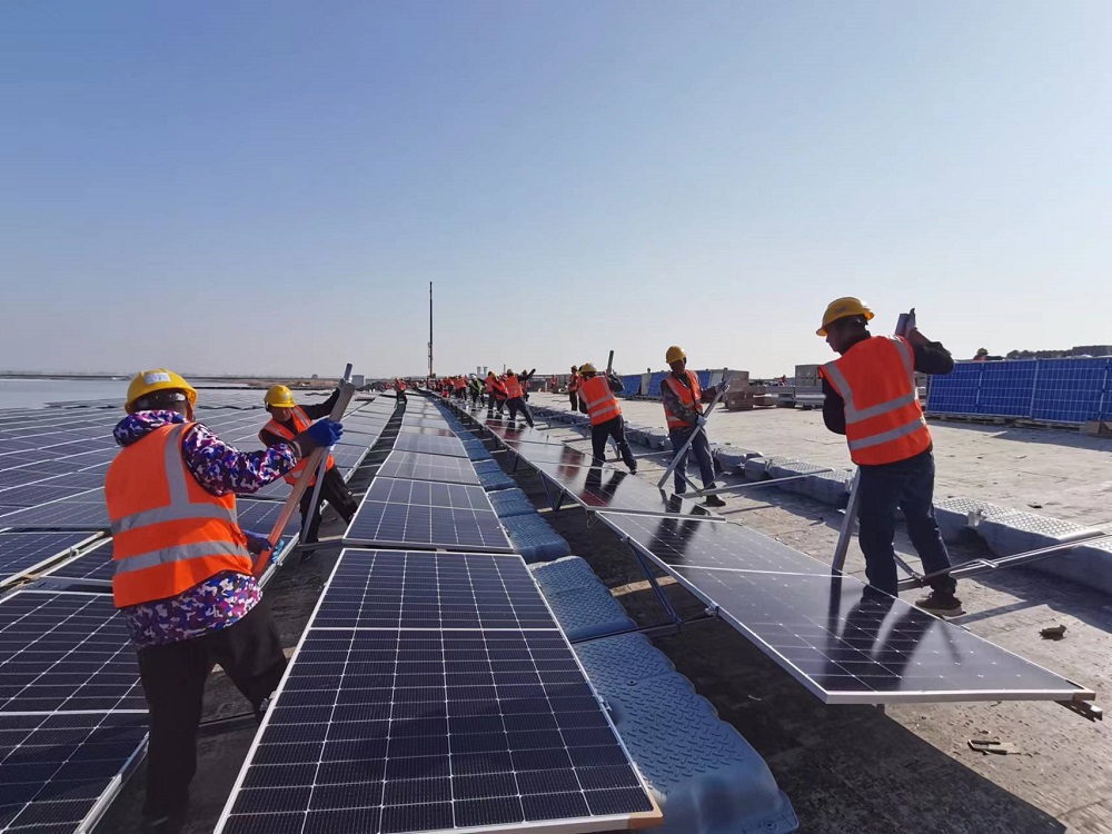 淮北礦業(yè)集團加快發(fā)展光伏“綠電”戰(zhàn)新產(chǎn)業(yè)補鏈項目。在面積達94公頃的袁店一礦84兆瓦集中式水面光伏項目現(xiàn)場,120名職工分成6個班組,從南北兩岸正加快施工。“項目建成后,平均每年提供綠色電能9311萬千瓦時,相對火力發(fā)電,每年節(jié)省標煤2.84萬噸,相應減少排放二氧化碳7.58萬噸。”該光伏項目建設負責人秦忠原介紹。