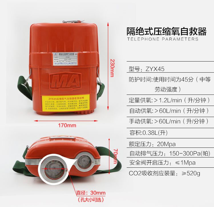 2.ZYX45隔絕式壓縮氧氣自救器型號及含義: